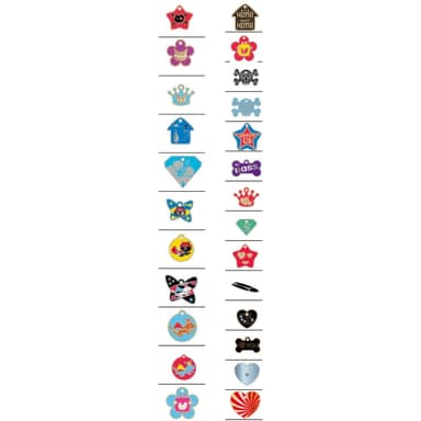Enfin , tout ceci peut être agrémenté de pendentifs d'identification tous plus originaux les uns que les autres présentant deux avantage : identifier formellement votre animal pour que vous ne le retrouviez pas à la fourrière et afin de le démarquer lors d'une soirée chic ou afin qu'il gagne ses lettres de noblesse dans le quartier.