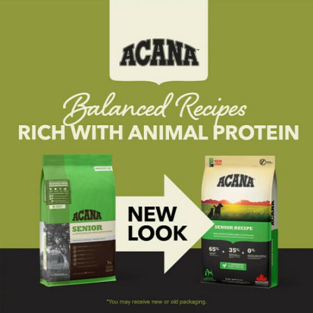 Les croquettes Acana Senior sont proposées en sac de 11,4 kg.