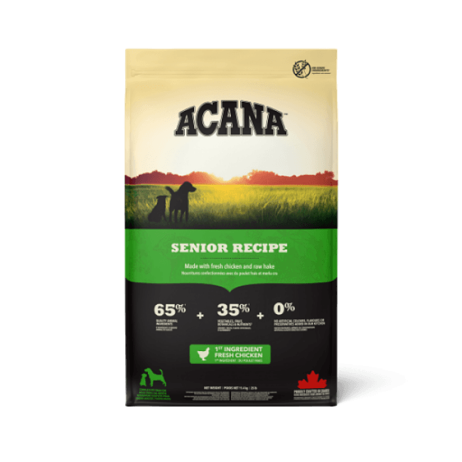 Les croquettes pour chien Acana Senior conviennent à toutes les races de chien senior de plus de 7 ans.