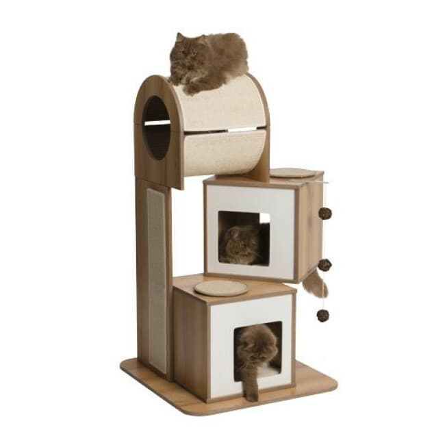 L'ensemble des matériaux utilisés pour l'arbre à chat Vesper Tour sont nobles, doux et harmonieux. Ce très bel arbre se décline en 3 coloris : Rouge, noyer et noir.