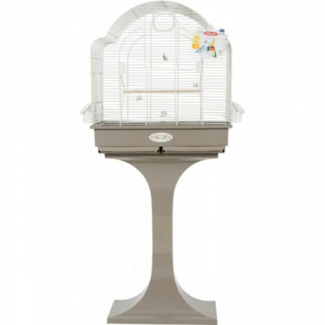 La cage avec son pied de coloris taupe est une cage qui correspond à tous les oiseaux.