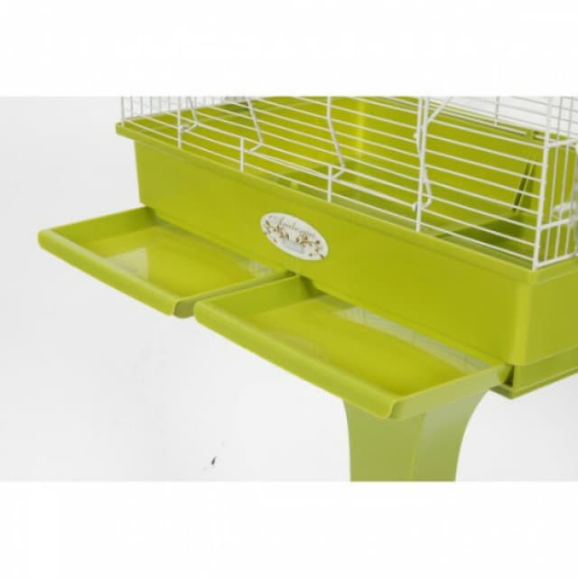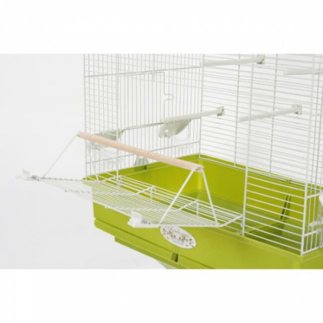 La cage est une grande cage pour oiseaux, simple d'entretien et d'utilisation avec ses deux tiroirs anti-projections.