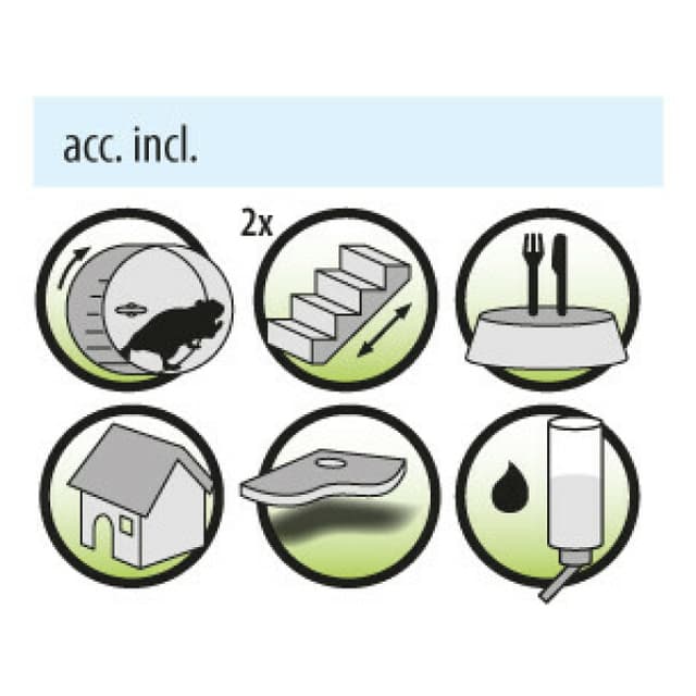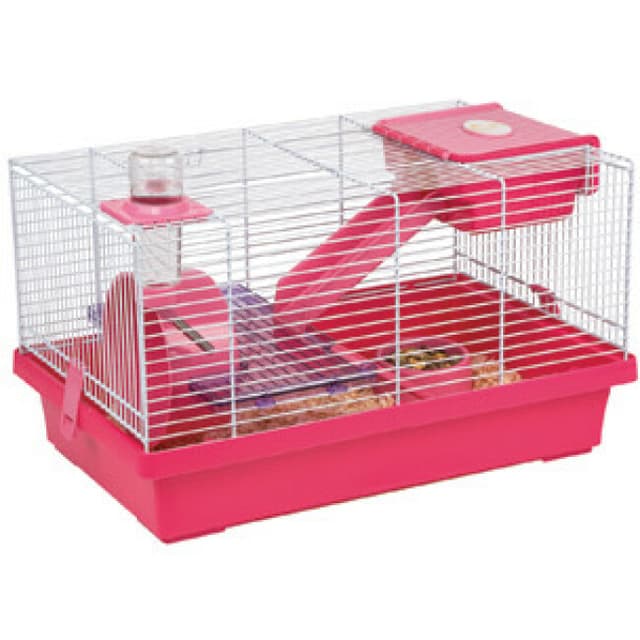 La cage rose pour hamsters Nicky est dotée de nombreux accessoires qui feront le bonheur de son habitant. Grâce à ses plateformes reliées par des escaliers, vous verrez évoluer votre rongeur en 3 dimensions. Une petite cachette surmontée d'une plateforme sera appréciée pour une sieste discrète.