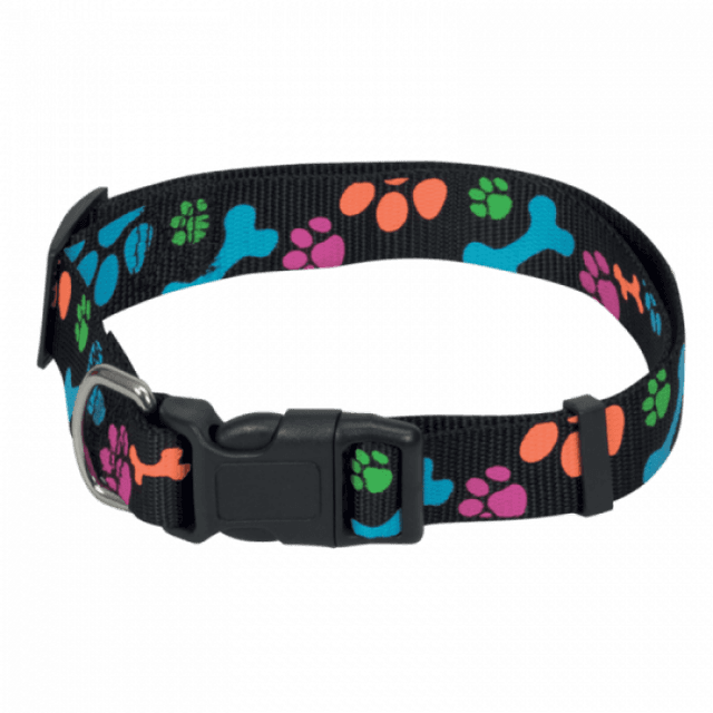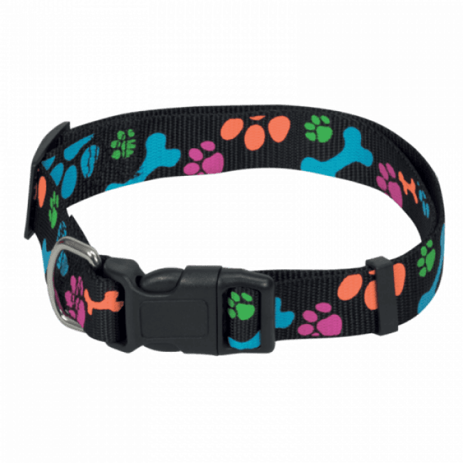 Collier noir réglable pour chien avec motifs pattes Chapuis Sellerie