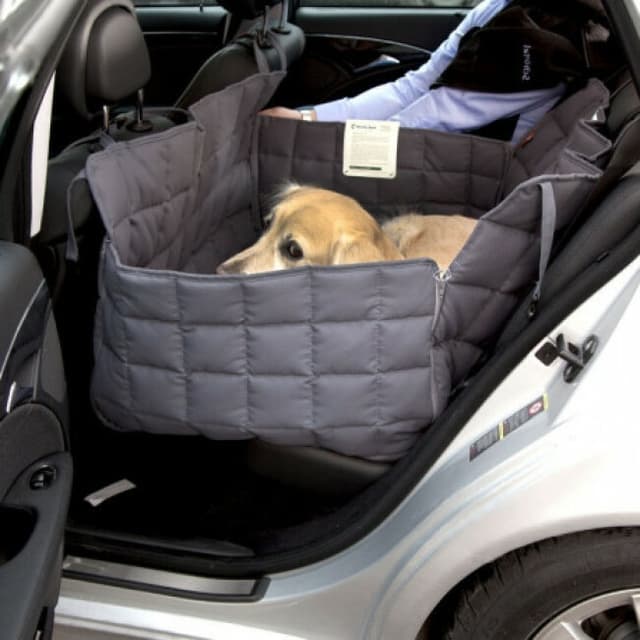 La couverture grise pour voiture Doctor Bark 2 places est conçue pour protéger une place côté portière et la place centrale laissant libre l'autre place côté portière pour un autre passager
