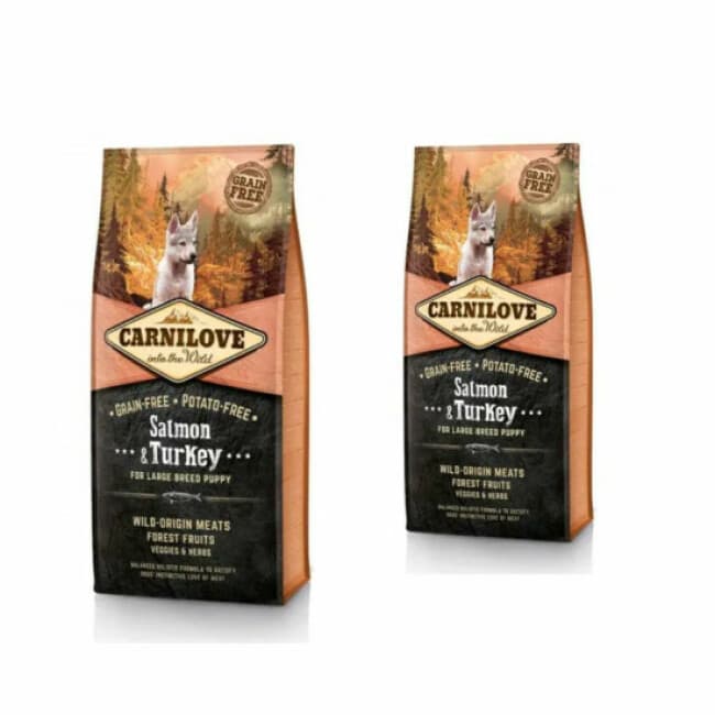 Les croquettes Carnilove Puppy saumon & dinde pour chiot de grande race sont de savoureux aliments aux plus proches de son régime alimentaire à l'état sauvage.