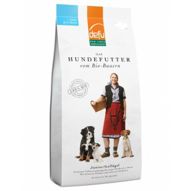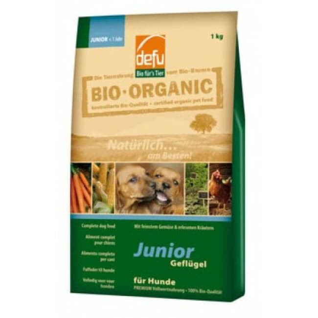 Bio Organic Defu Junior est un aliment 100 % bio composé d'ingrédients de qualité (avoine, carottes, herbes, maïs, poireau, riz, viande de volaille).