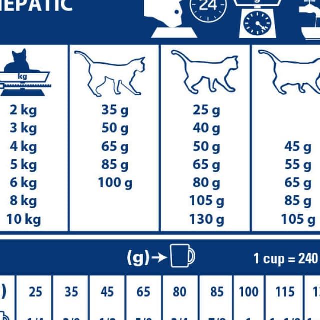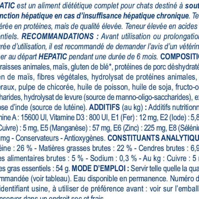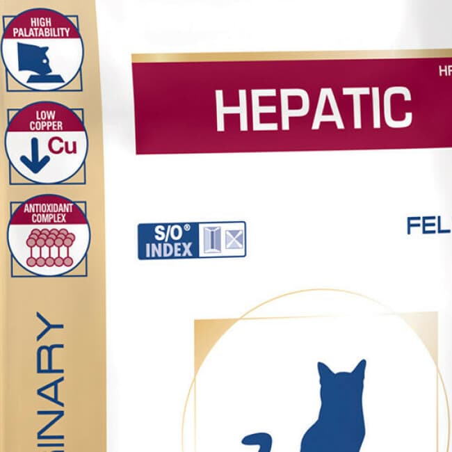 Cette alimentation médicalisée est recommandée aux chats souffrant de troubles hépatiques (Shunt porto-systémique, insuffisance hépatique, accumulation hépatique du cuivre, cholangite, encéphalopathie hépatique).