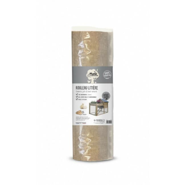 Cette litière est disponible en sac de 6 kg et se présente sous forme de rouleau à découper de 60 cm x 2.5 m. Épaisseur de 1 cm environ.