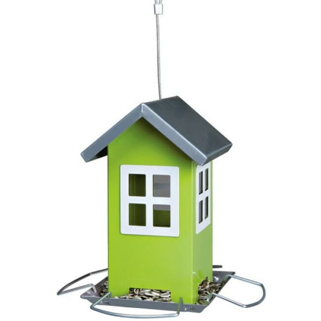 La forme maisonnette verte de cette mangeoire pour oiseaux ne devrait pas vous laisser indifférent.