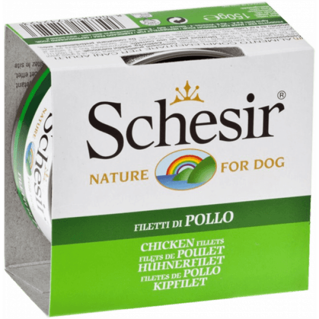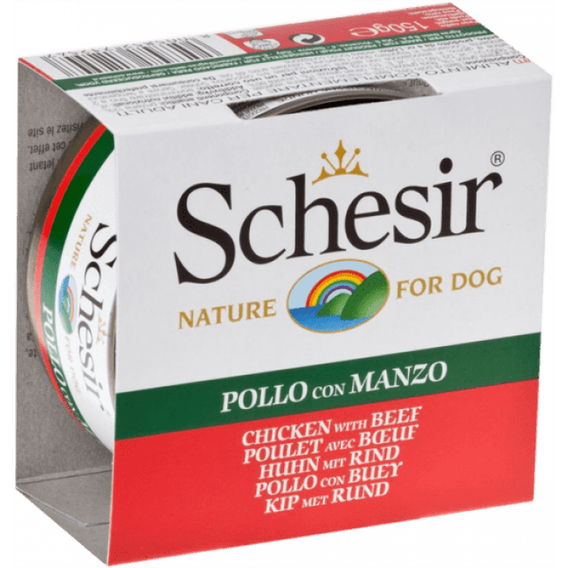 La pâtée pour chien Schesir en gelée - Boîte 150 g est une pâtée des plus gourmandes que vous puissiez offrir aux papilles de votre chien, même le plus difficile.