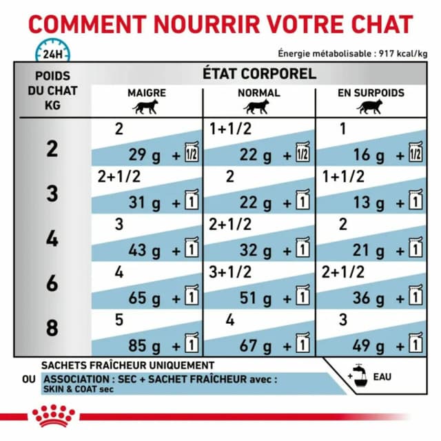 - Favorise un pelage doux, brillant et limite la perte de poils