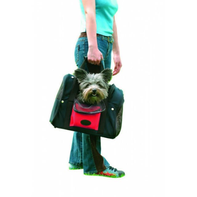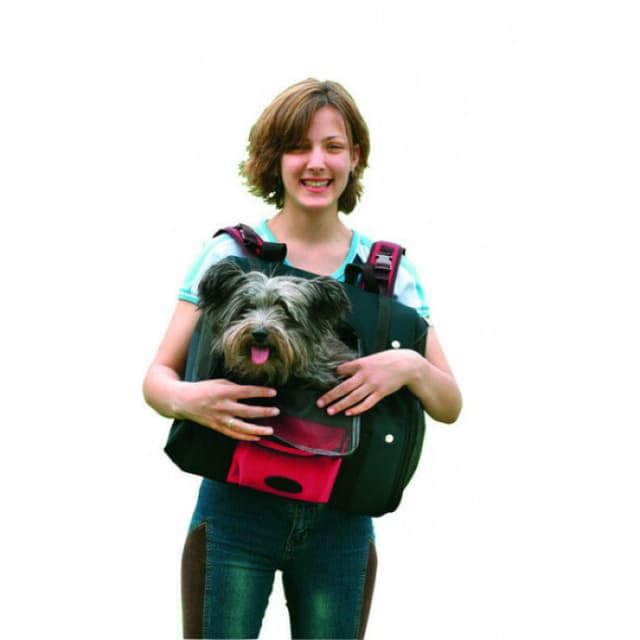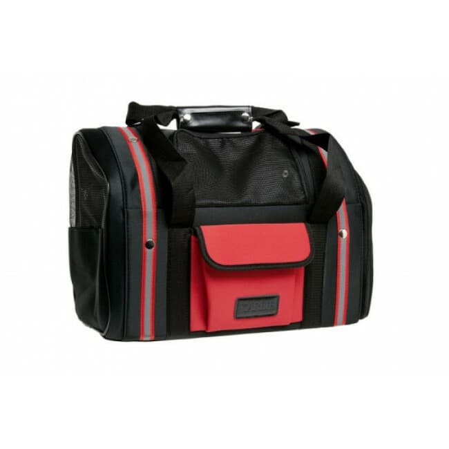 Optez pour ce sac noir et rouge et partez vous balader en toute sécurité avec votre chat ou votre chien confortablement installé.