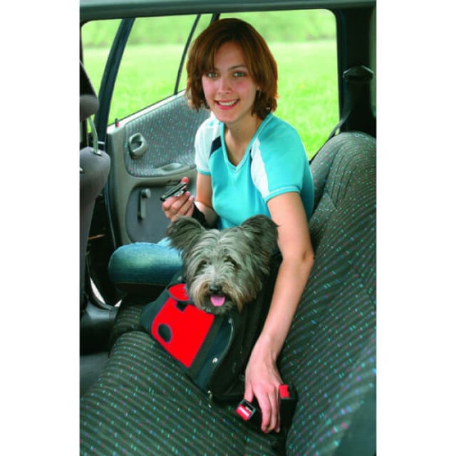Vous pouvez également choisir de l'utiliser en siège auto pour votre compagnon à quatre pattes après avoir passé la ceinture de sécurité entre les deux boucles du sac.
