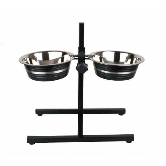 Ce robuste support conçu en carbone et acier est doté de deux bols en inox en face à face.