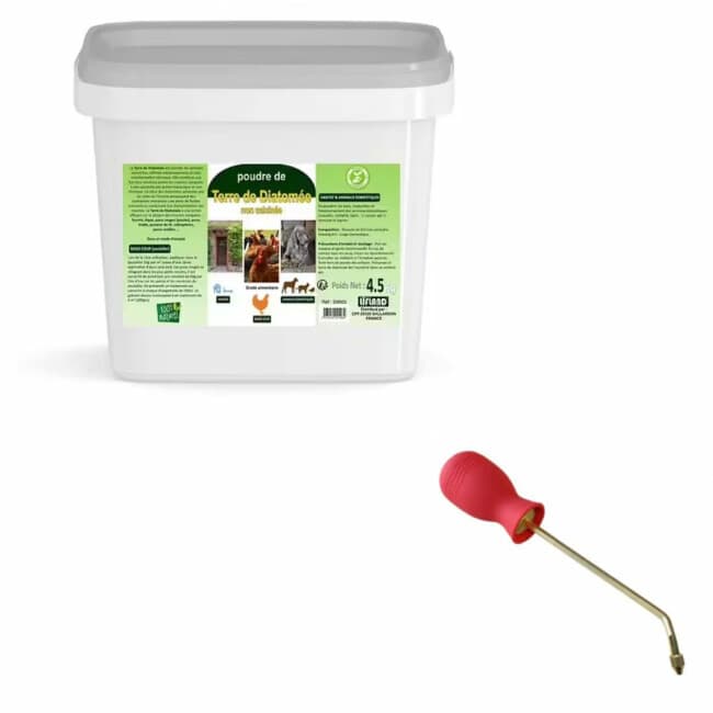 Cette terre de diatomée est de grade alimentaire, ce qui lui permet d'être pulvérisée directement sur l'animal sans risques.