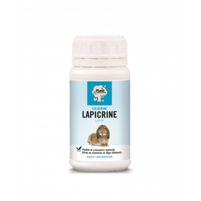 Volacrine Lapicrine complément alimentaire pour lapin 250 ml Plume & Cie permet une croissance harmonieuse de votre lapin.